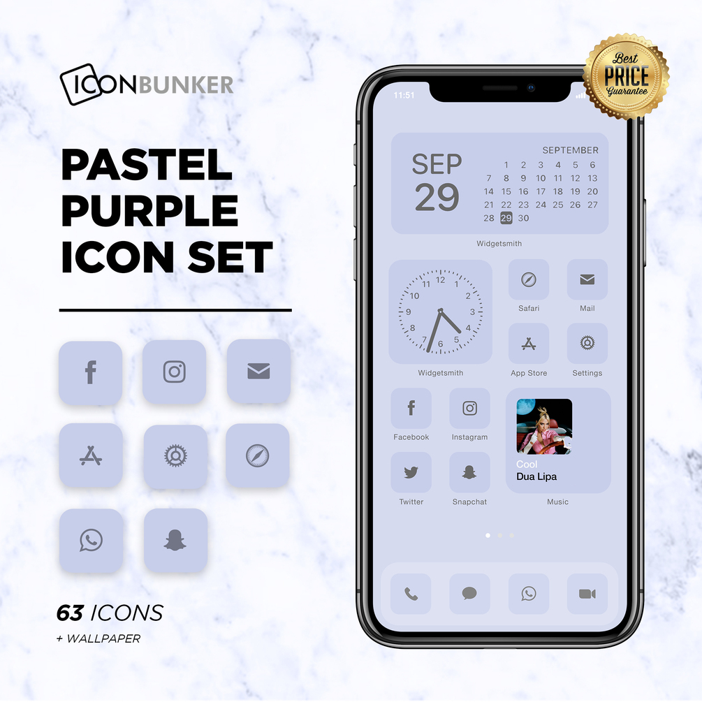 Enjoy this stylish “Pastel Purple” Icon Pack for IPhone iOS14!