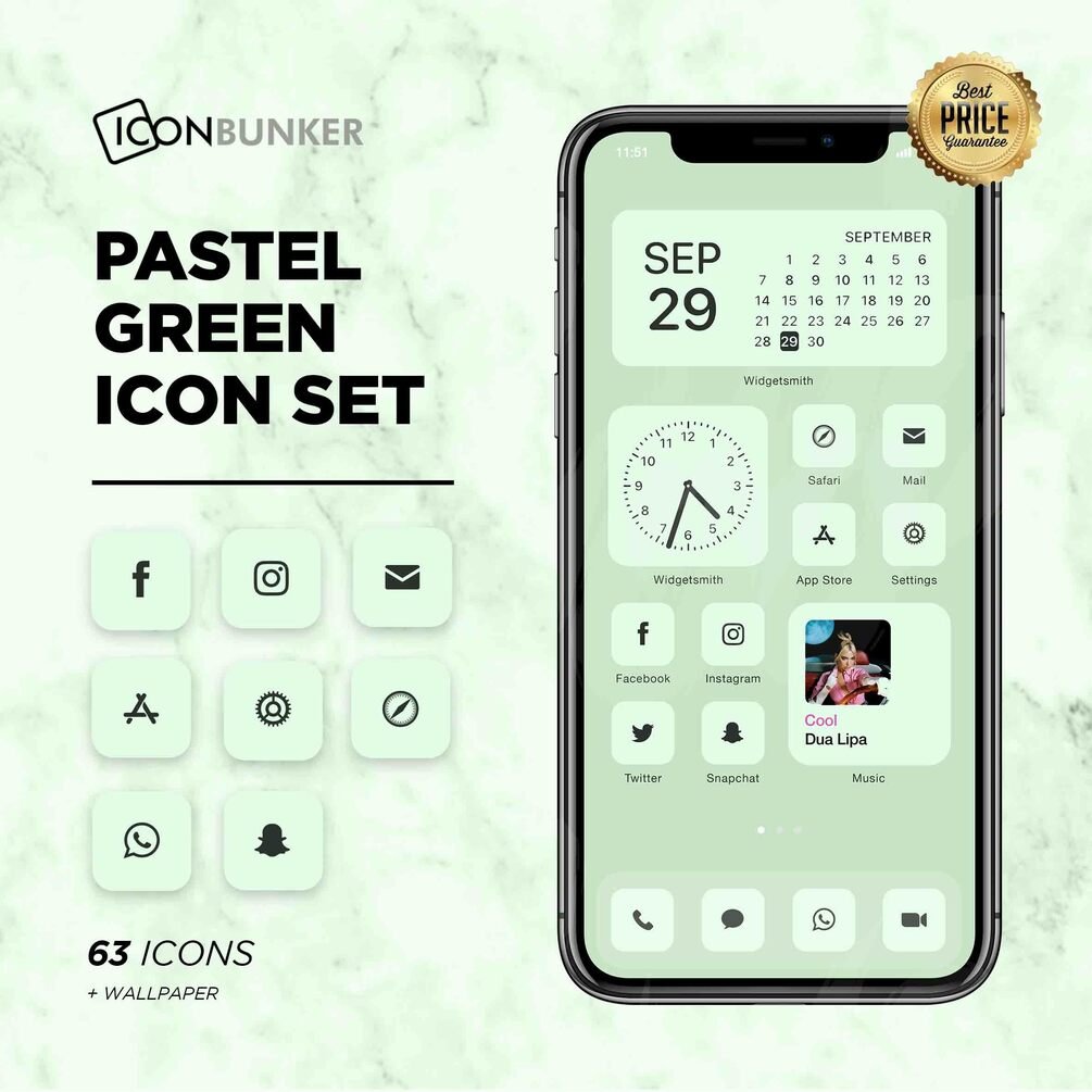 Enjoy this stylish “PASTEL GREEN” Icon Pack for IPhone iOS14!